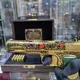 Корпус пистолета выполнен из высококачественного никеля, покрытого золотом высшей пробы (10мкм), а рукоять украшена натуральным нефритом, выполненным с использованием авторской гравировки. Элегантно расписанный эмалями, он станет поистине уникальным акцентом в вашей коллекции.